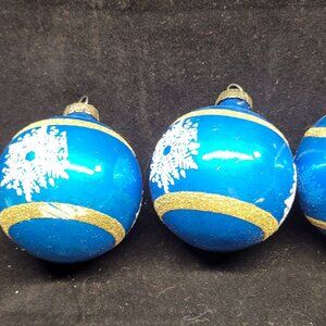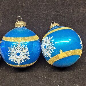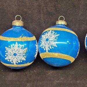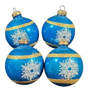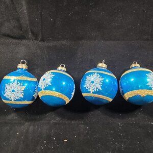 Set Of 4 Snowflake Design Christmas Tree Ball Ornaments Vtg Gold Glitter