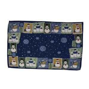 Set Of 4 Snowman Winter Placemats Woven Fabric With Festive Design