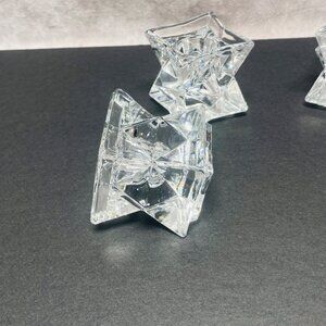 Set Of 4 Star-Shaped Clear Crystal Glass Taper Candle Holders