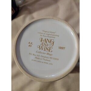The handles and dishwasher-safe design make them convenient for daily use, while the original and licensed reproduction of the Lang and Wise brand adds to their value as a collectible item. Manufactured in China in 1997, these mugs are a great addition to any kitchen or collection. Based on painting from Anna Krajewski.