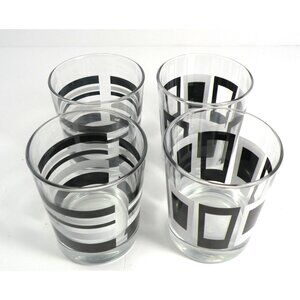 Set Of 4 VTG IKEA Godis Mid-Century Modern Glasses With Black & White Geometric