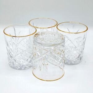 Brillant Set Of 4 Valencay Gold Embossed Whiskey Glasses Old Fashioned Style 10.4oz