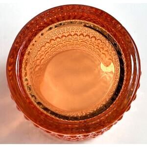 These vintage amber bubble glass candle holders / cups exude a classic charm. Their textured design enhances grip and adds visual interest. Ideal for holding votive candles or other small items, they are both functional and decorative, adding a touch of elegance to any room.