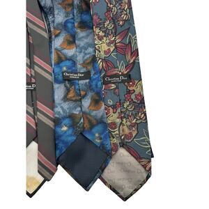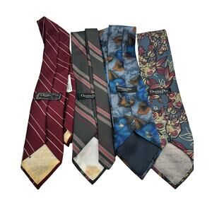 Set Of 4 Vintage Christian Dior Monsieur Mens Neck Ties Striped Floral