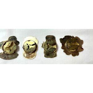 These vintage Christmas button covers offer a festive touch to holiday attire. The set includes a classic wreath, a charming soldier, a cheerful snowman, and an elegant rocking horse design. Crafted with vibrant colors, they provide a nostalgic and whimsical accent to clothing or accessories during the holiday season.
