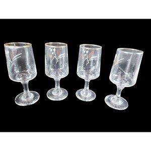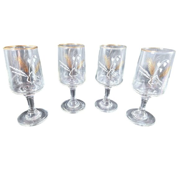 Set Of 4 Vintage Dema Sherry Glasses With Wheat Motif & Gold Rim Barware