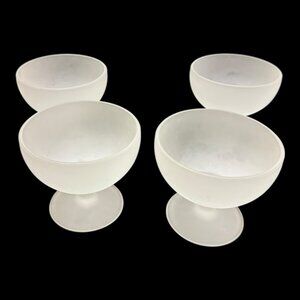 Set Of 4 Vintage Frosted Glass Dessert Ice Cream Compote Footed Bowls