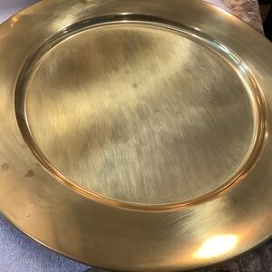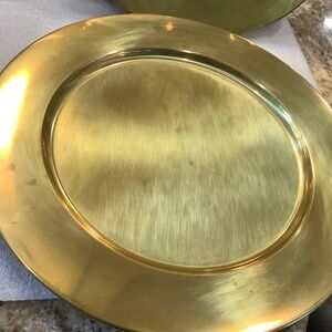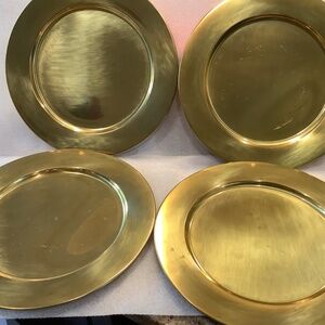 Set of 4 solid brass service plates or chargers, 12 inches wide,