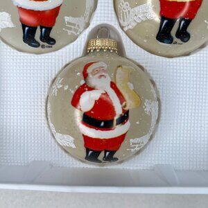 Set Of 4 Vintage Santa Claus Christmas Ornaments Painted Glass Balls Decor