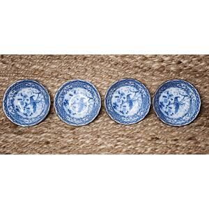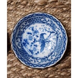 Set Of 4 Vintage Toyo 5” Blue White Peacock Serving Bowls Porcelain