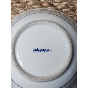 This set of 4 vintage Japanese Andrea by Sadek Toyo 5" blue and white peacock serving bowls, made of porcelain, features a round shape and a decorative peacock pattern. The bowls are signed by Toyo and have a glossy finish, adding an Oriental touch to any dining set. Made in Japan using pottery production techniques, these art pottery bowls are a unique addition to any collection, perfect for serving up snacks or desserts in style.