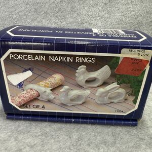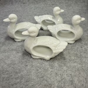 Set Of 4 Vtg Japan 1984 White Duck Porcelain Napkin Rings w/Original Box