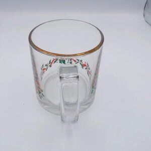 Set Of 4 Vtg Libbey Arby's Glass Coffee Cocoa Mugs Christmas Holly Red Ribbon