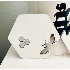 This is a set of 4, farmhouse inspired, white bee themed coaster set. You will receive 2 hexagon coasters and 2 round coasters (4 total) each measuring 4 inches in diameter.