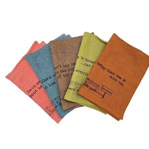 Set Of 5 Happy Valley Linen Tea Towels With Train & Tea Quotes In Assorted Color