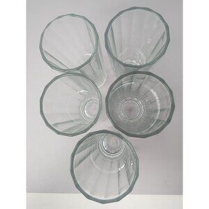 Set Of 5 Italian Vintage Highball Glasses Clear Ribbed Design Marked Italy 55