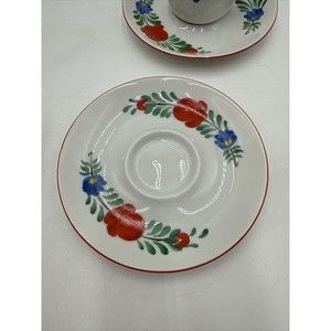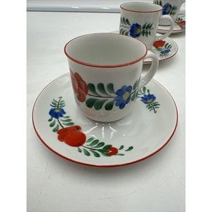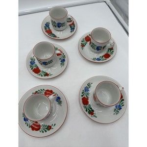 Set Of 5 Rare Kalocsa Espresso Demitasse Cups And Saucers Folklor K.F.T. Hungary