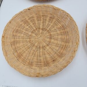 Set Of 5 rattan tan plate chargers, 4 is photographed but there is actually 5