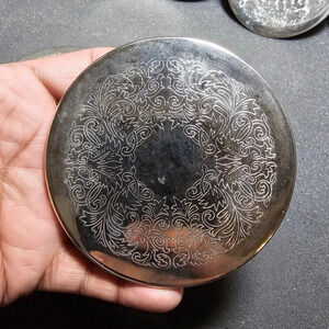 Set Of 5 Silver Plated Ornate Engraved Round Coasters