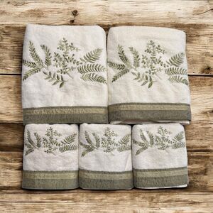 Set Of 5 Vintage Avanti Cream Botanical Guest Set 2 Bath Towels 3 Hand Towels