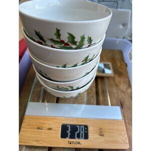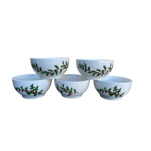Set Of 5 Vintage Marthaware Christmas Holly Berry Design Bowls