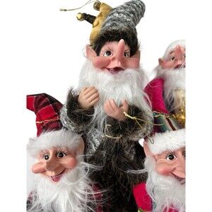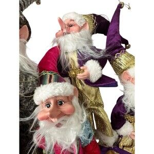 Set Of 5 Whimsical Elves Gnomes Ornaments Tall Christmas Figures Holiday Decor