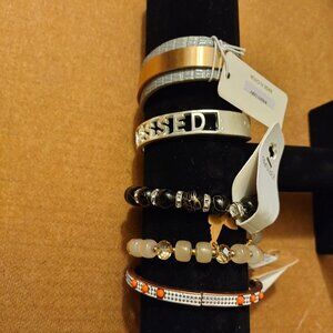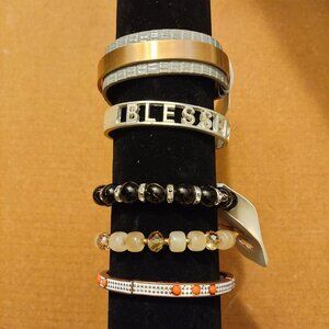 Set Of 5 Womens Assorted Bracelets With Gold Silver Black & White Accents