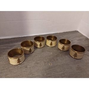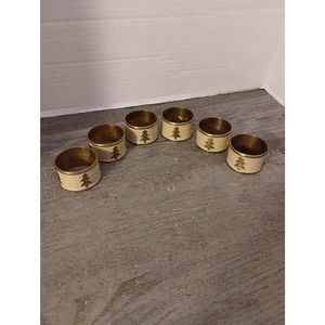 Set Of 6 Christmas White Enameled Napkin Rings With Tree