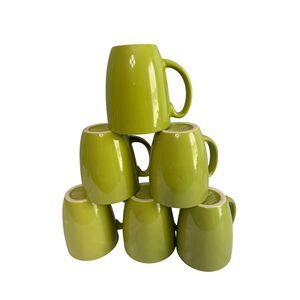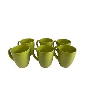 Set Of 6 Corelle Livingware Green Stoneware Coffee Mugs