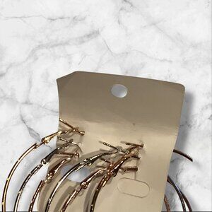 This set of hoop earrings offers both style and versatility, featuring three gold-tone and three silver-tone pairs. Ideal for accessorizing day or night, they add a touch of elegance to any outfit. Crafted to ensure durability and comfort, these hoops are a timeless addition to any jewelry collection.