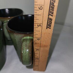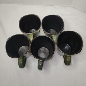 Set Of 6 Green Ceramic Stoneware Coffee Mugs with Black Interior 12 oz.