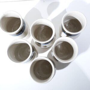Set Of 6 Handcrafted Ceramic Goblets With Blue & Brown Stripes