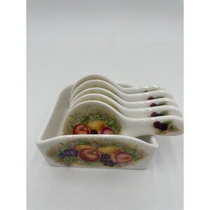 Set Of 6 Miniature Ultra Bone China Fruit Design Spoon Rests Holder