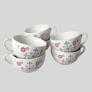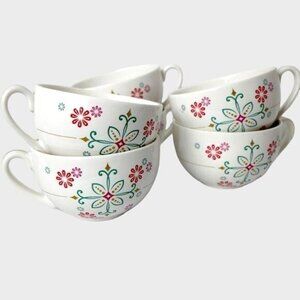 Set Of 6 Snowflake Christmas Ceramic Floral Patterned Tea Coffee Cups