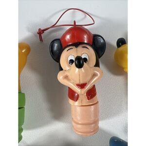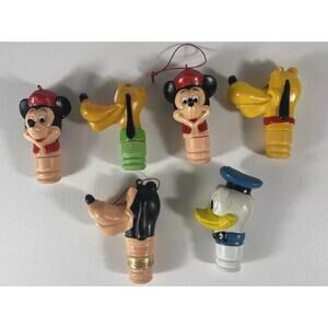 This is a set of 6 vintage 1976 Disney candy tube toppers featuring popular characters Mickey Mouse, Minnie Mouse, and Donald Duck. Made of plastic, these ornaments are designed to top candy tubes and likely served as holiday decorations. The fun and nostalgic design of these Disney characters from 1976 adds a touch of whimsy to any collection of Disneyana or holiday ornaments.