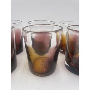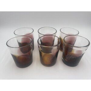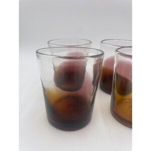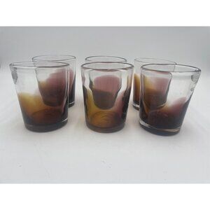 Set Of 6 Vintage Ombre Glasses - Retro Brown & Amber Fade Low Ball Tumblers
