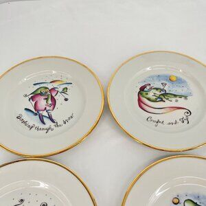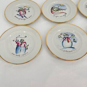 Set Of 6 Vintage Rosanna Holiday Dessert Plates With Gold Trim