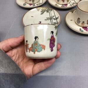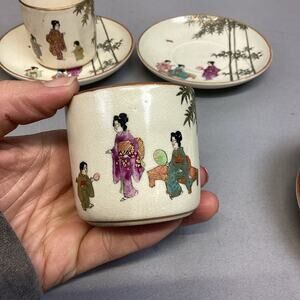 Set Of 6 Vintage Satsuma Japanese Porcelain Cups & Saucers. Most are in good condition with only minor imperfections or stains. One of the cups has been repaired which can be seen in pictures.