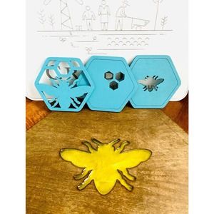 This is a set of 6, waterfall blue, farmhouse inspired bee themed wood coasters. You will receive 3 round coasters (measures 4 inches in diameter) and 3 hexagon coasters (measures 4 inches in diameter) all finished in this really pretty waterfall blue.