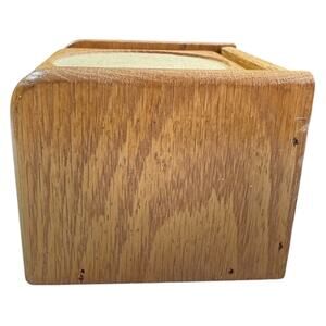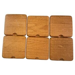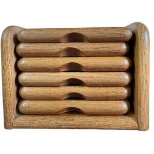 Set Of 6 Wooden Coasters With Cork Insert Matching Holder Vintage 80s Golden Oak