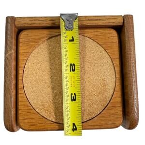 A durable and elegant coaster set crafted from oak wood and cork. Protects surfaces from drink spills and heat. Convenient holder for organized storage.