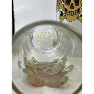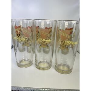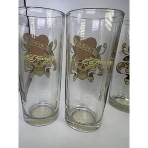 Set Of 7 Vintage Ed Hardy Drinking Beer Glasses Love Kills Slowly Skull Heart