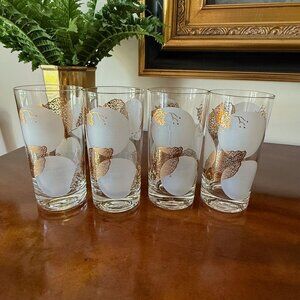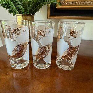 Set Of 7 Vintage High Ball Tumblers Glasses Gold Leaf Frosted Moon Design - Mid-