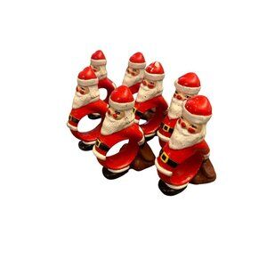 Set Of 7 Vintage Santa Claus Napkin Rings Christmas Table Decor