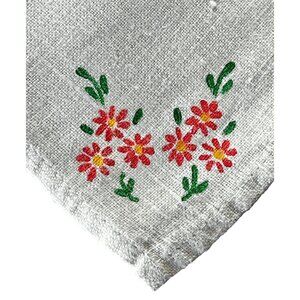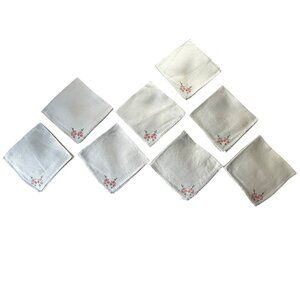 Set Of 8 Cream Cotton Linen Blend Hand-Painted Floral Napkins