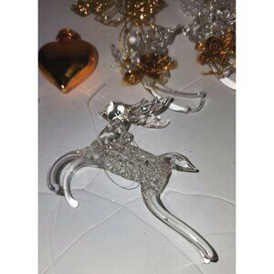 Set Of 8 Handcrafted Glass Christmas Ornaments - Reindeer Angels Heart & Gold Wi
