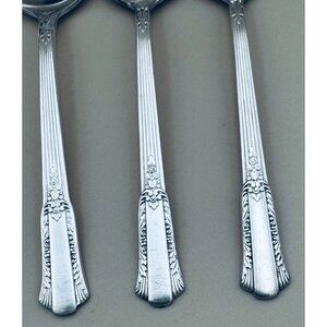 This set of International Silver Rogers 1940 Treasure silverplate teaspoons embodies the timeless elegance of vintage flatware design. The delicate detailing of the handles is a testament to the craftsmanship of the era. These spoons serve are perfect for enhancing any table setting with a touch of history.