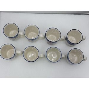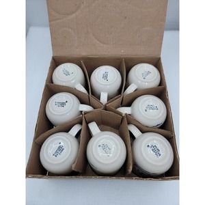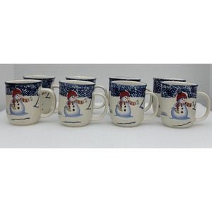 Set Of 8 New In Box Thompson Pottery Snowman Winter Scene Coffee Cups 8 oz.