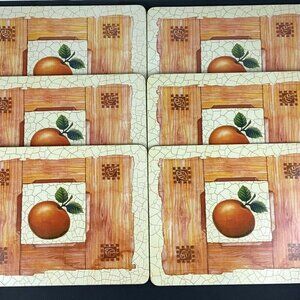 Set Of 8 Rectangular Fruit-Themed Placemats With Orange Design Cork Backing