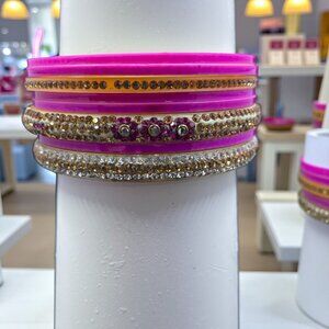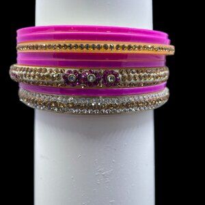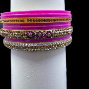 Boho, Festival, Rhinestone, Sparkly, Pink Bangles, Orange Bangles, Acrylic, Jewelry Set, Stacked Bracelets, Bollywood Style, Glam, Costume Jewelry, Coachella, Statement Jewelry, Like New